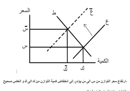 - ارتفاع سعر التوازن من س الى سَ يؤدي إلى انخفاض كمية التوازن من ك